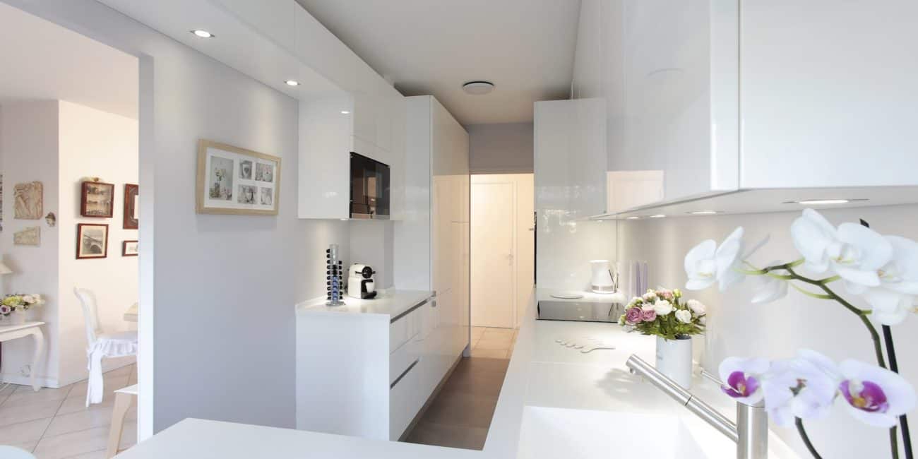 Une rénovation totale et une véritable cure de jouvence. C’est pour la cuisine d’une maison bourgeoise des Yvelines (78) que la décoratrice d’intérieur Anne-Laure Rusak a fait appel au magasin Culinelle Intemporelle et plus particulièrement à Anne Babu, responsable de notre second point de vente qui met en avant un style intemporel aux multiples inspirations. Architecte d’intérieur et conceptrice expérimentée, Anne Babu a su mettre à profit son savoir-faire pour proposer une implantation au style néo classique savoureux. Pour cela, elle a collaboré avec notre partenaire français Gaio. Seule contrainte du projet, la volonté des propriétaires de positionner la colonne réfrigérateur juste à droite de l’entrée. Pour la dissimuler, la conceptrice l’a habillé d’un élément de décoration intégrant des étagères en verre.